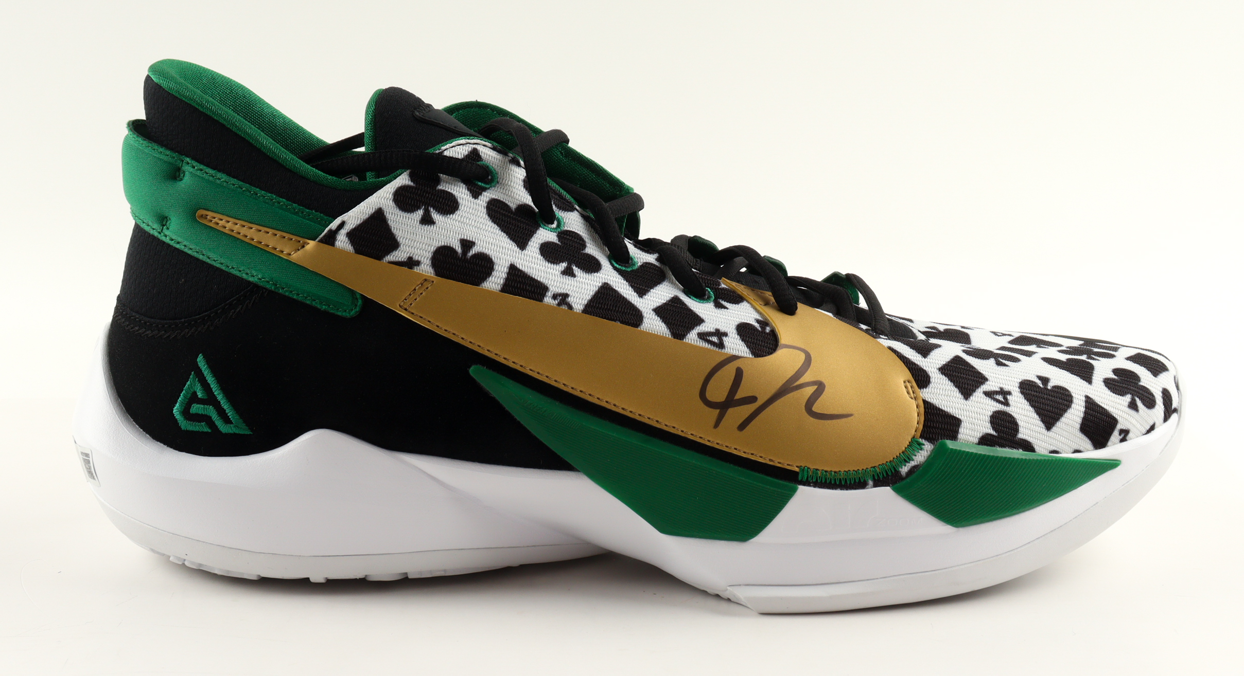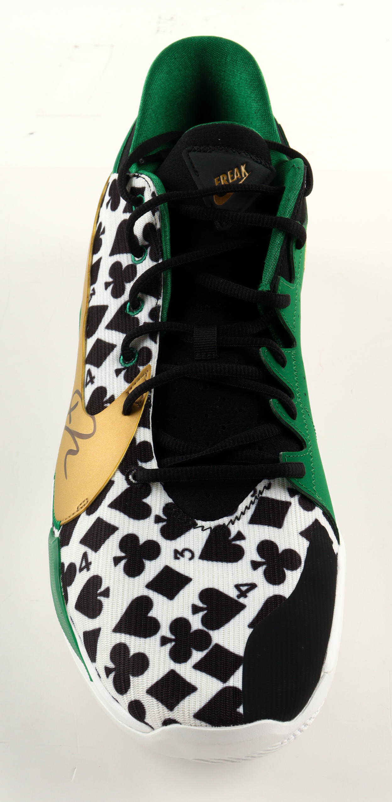 Nike Zoom Freak 2 "Jack" Promo Basketball Shoe has been hand-signed by Giannis Antetokounmpo (Milwaukee Bucks).