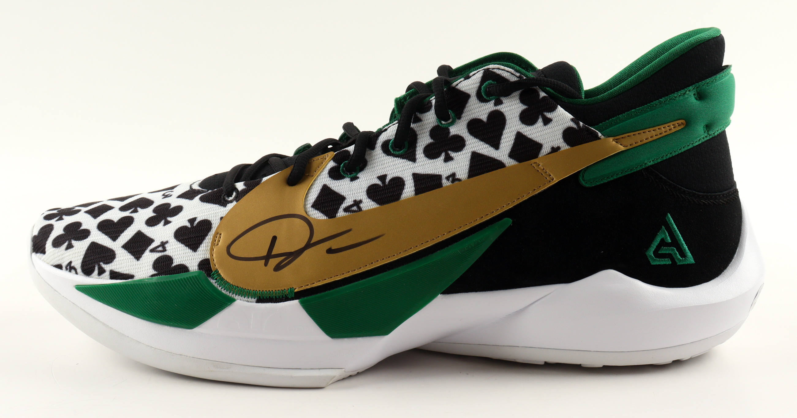 Nike Zoom Freak 2 "Jack" Promo Basketball Shoe has been hand-signed by Giannis Antetokounmpo (Milwaukee Bucks).