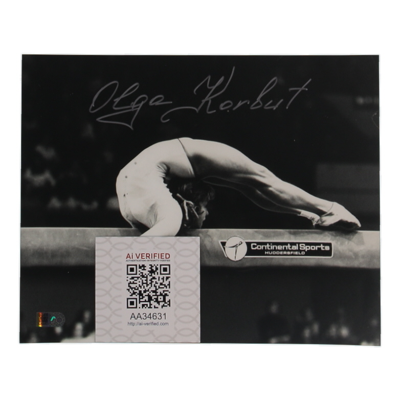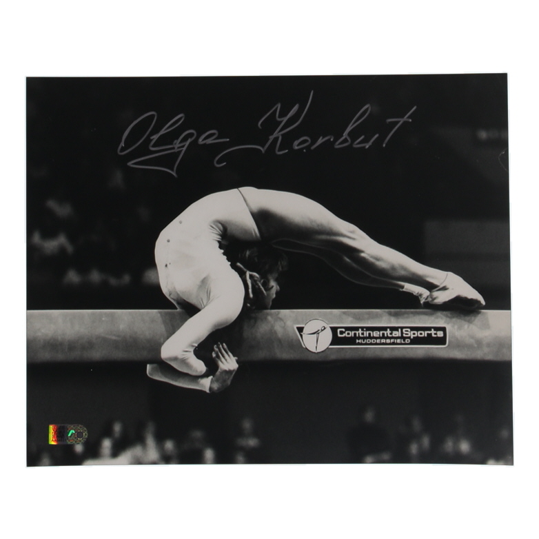 Photo measures 8" x 10" in size and has been hand-signed by Olga Korbut (HOF).