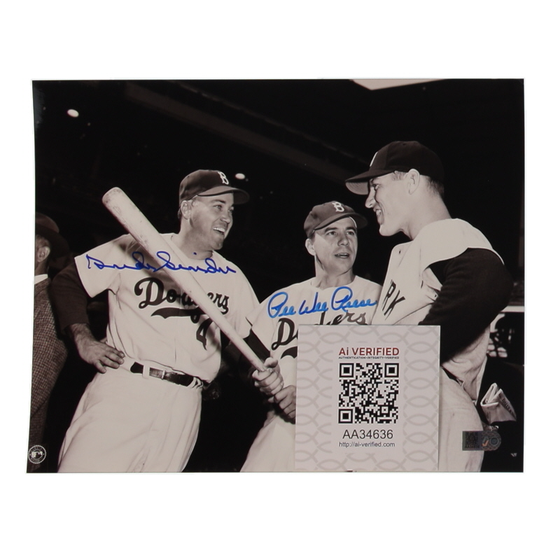 Photo measures 8" x 10" in size and has been hand-signed by Duke Snider (D. 2011, Brooklyn Dodgers, HOF) & Pee Wee Reese (D.1999, HOF).