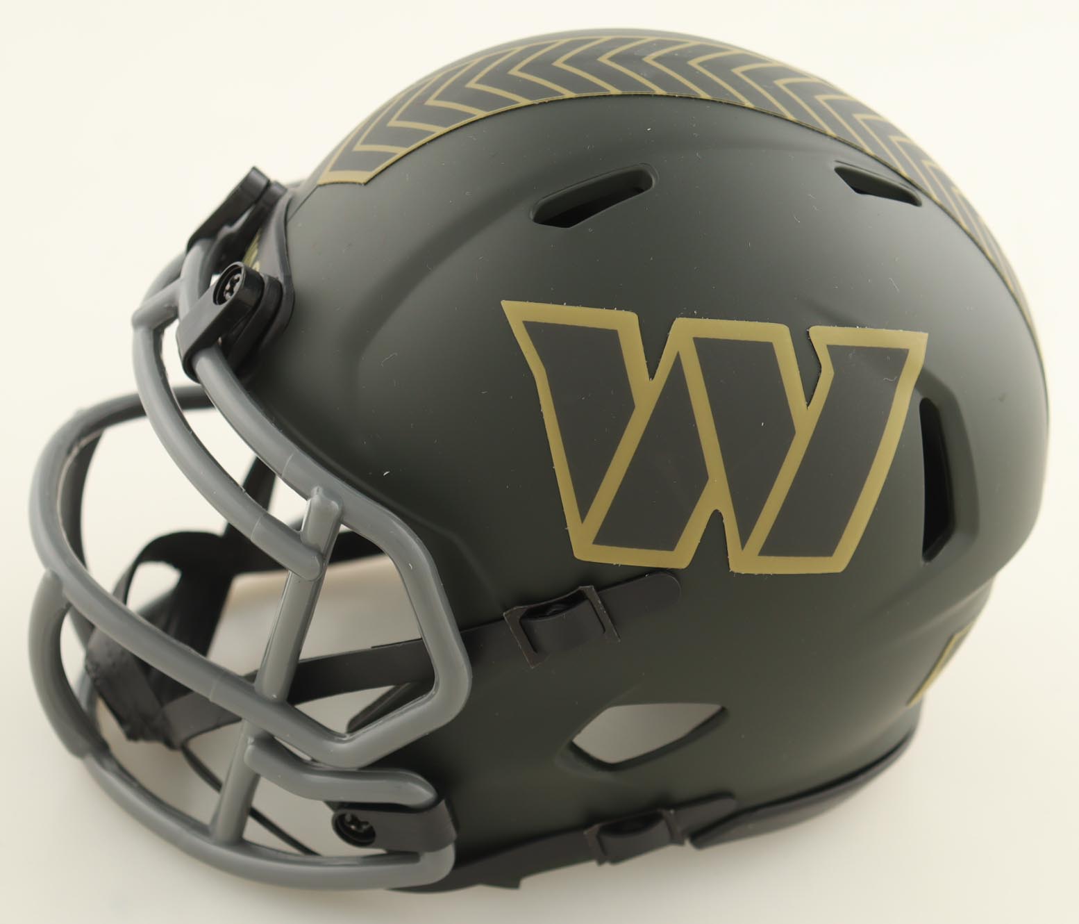 Riddell Washington Commanders Salute To Service Alternate Speed Mini Helmet. Hand-signed by Jacory Croskey-Merritt.