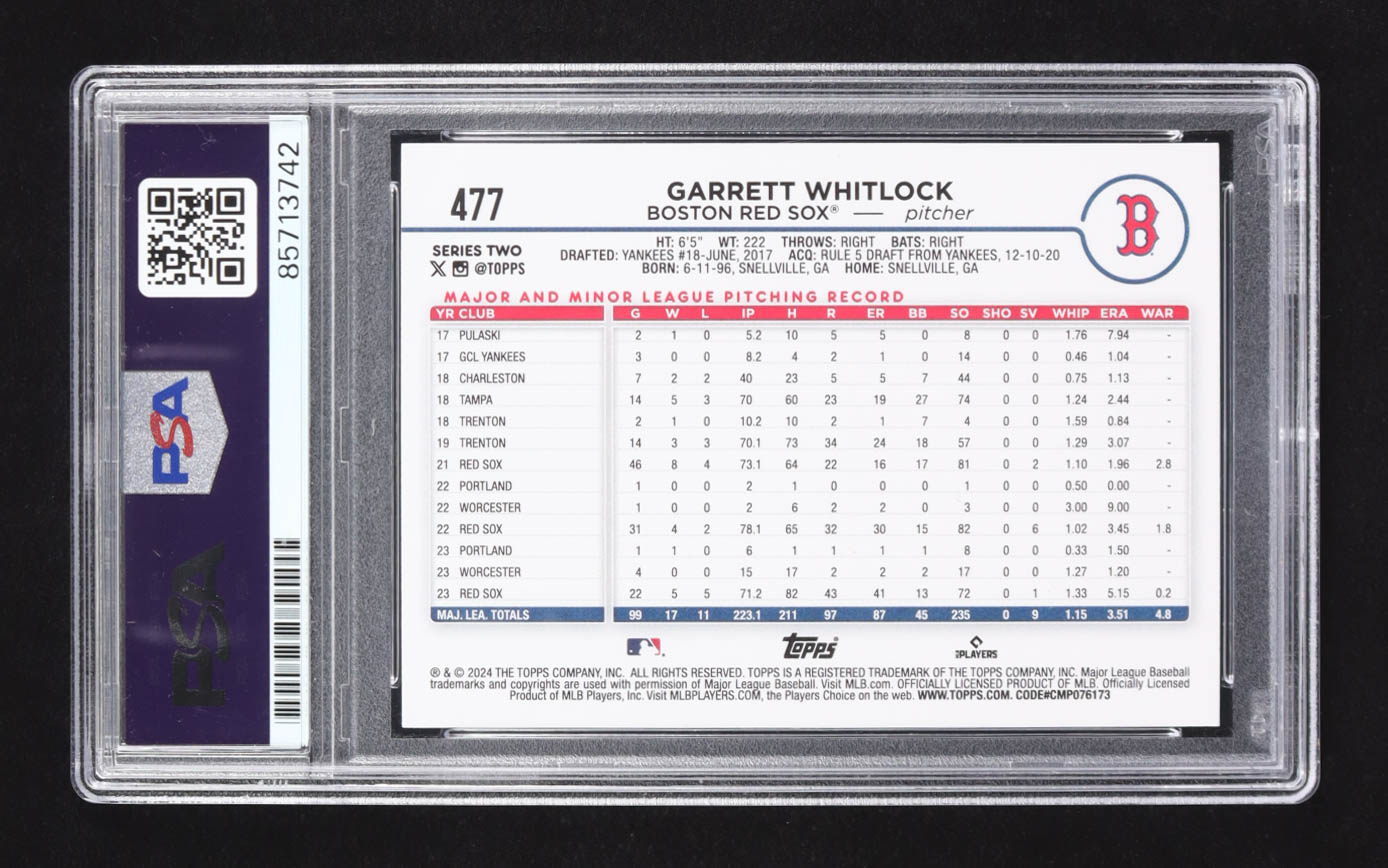 Garrett Whitlock Signed 2024 Topps Series Two #477 (PSA | Autograph Graded PSA 10)