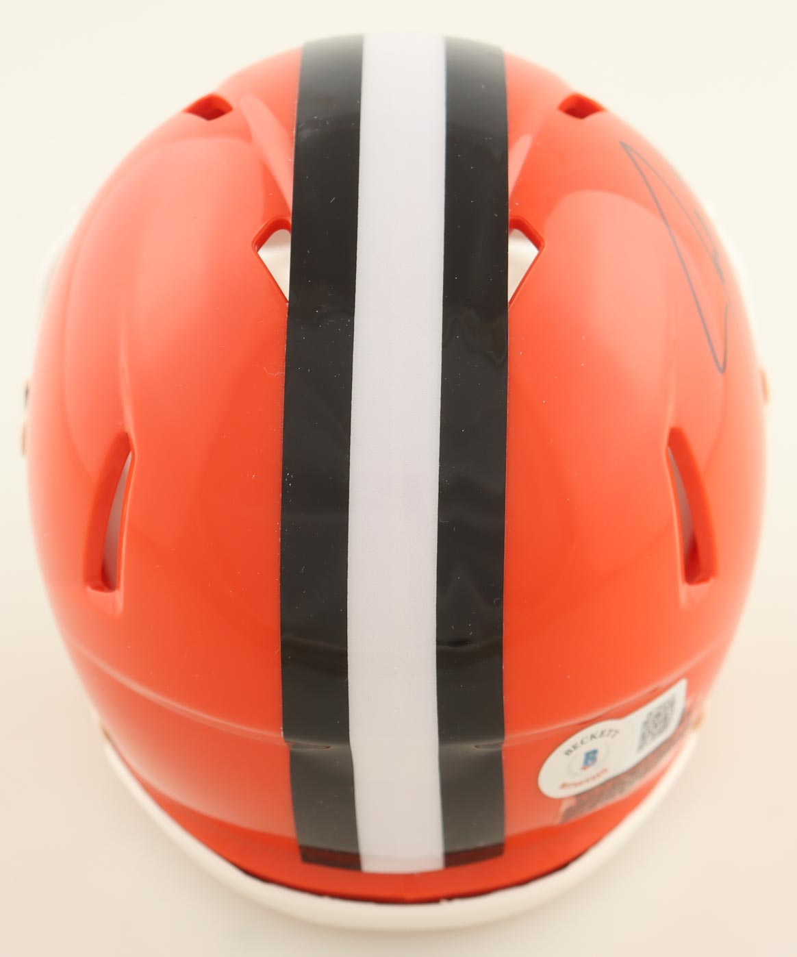 Riddell Cleveland Browns Speed mini helmet has been hand-signed by Joe Thomas (HOF).