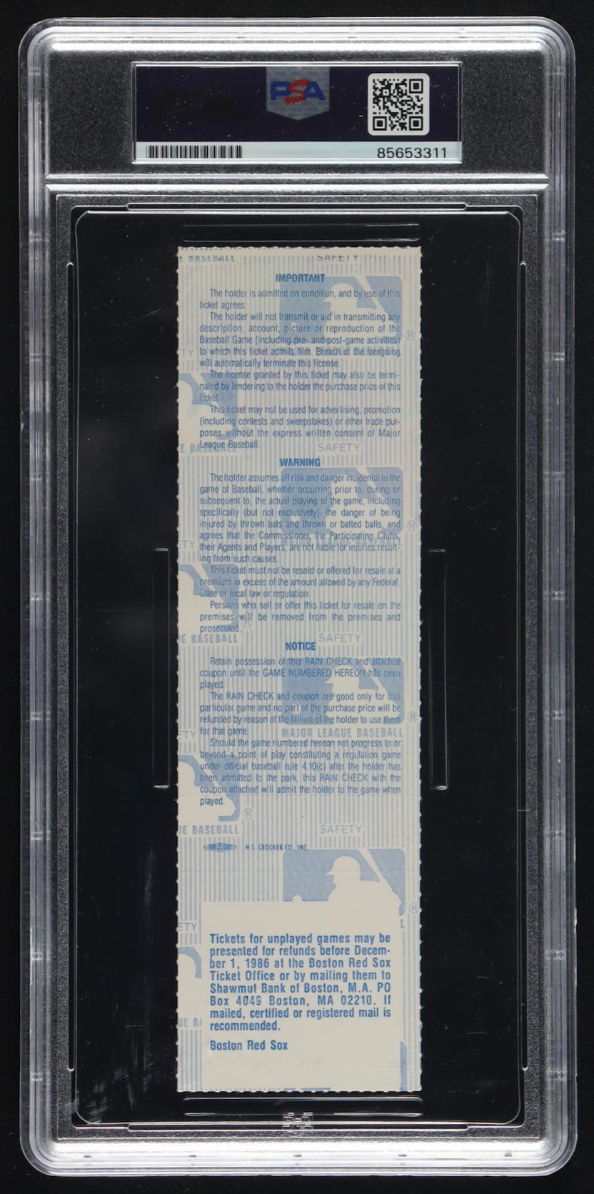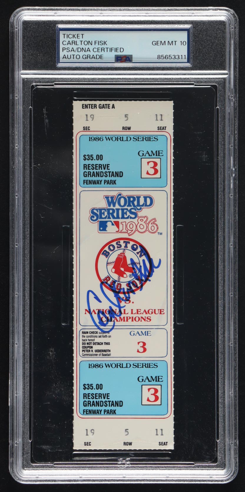 1986 Original World Series Game ticket has been hand-signed by Carlton Fisk (Boston Red Sox, HOF) and graded (PSA 10). Please see photos for details regarding the item.