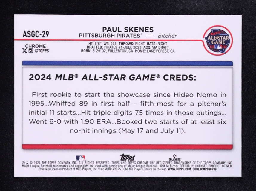 Paul Skenes 2024 Topps Chrome Update All-Star Game #ASGC29 RC