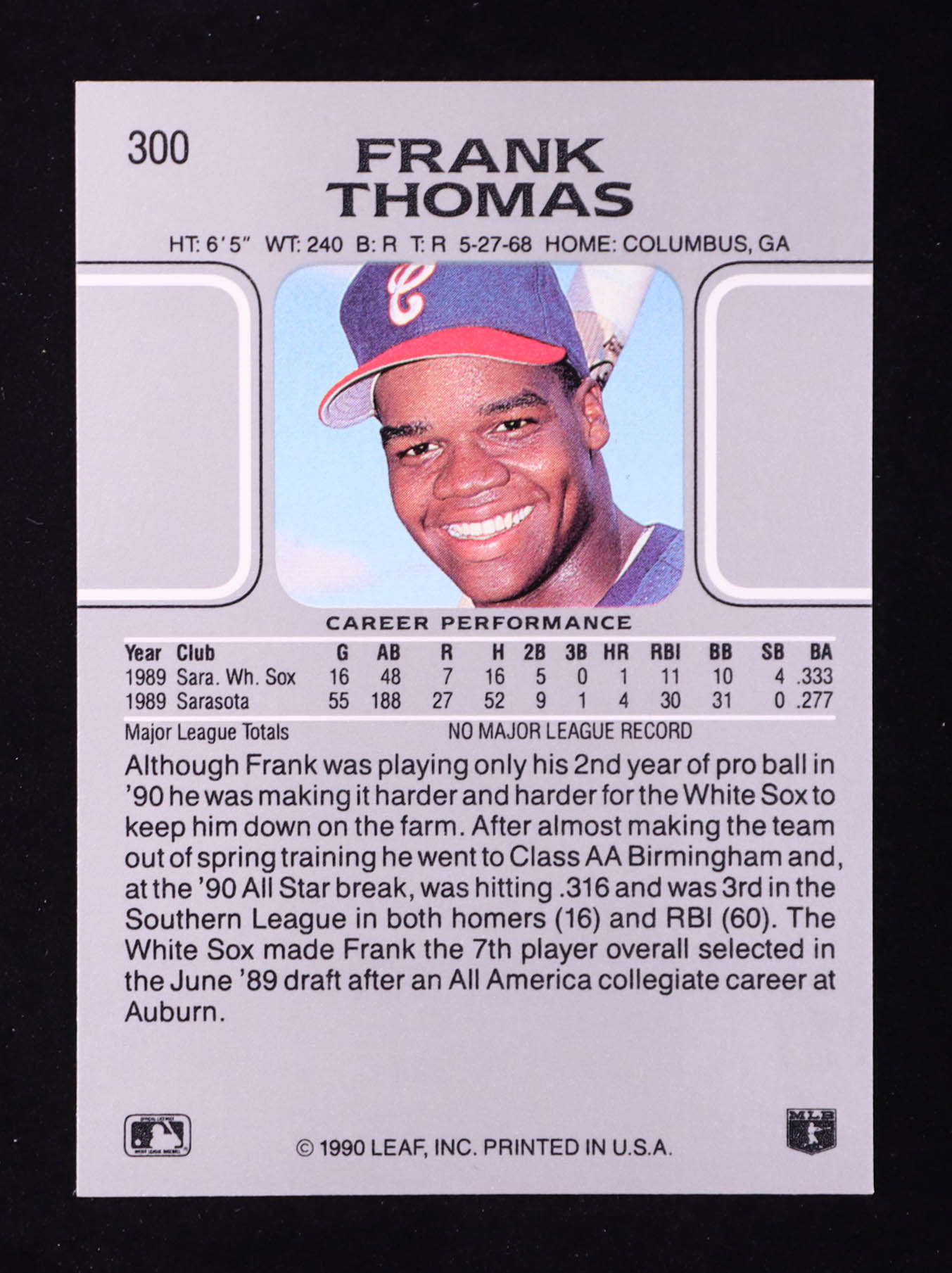 Frank Thomas 1990 Leaf #300 RC