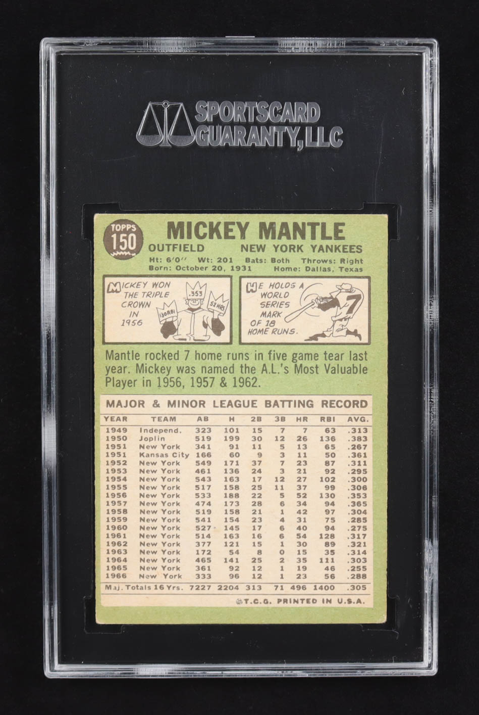 Mickey Mantle Topps 1967 #150 (SGC 3)
