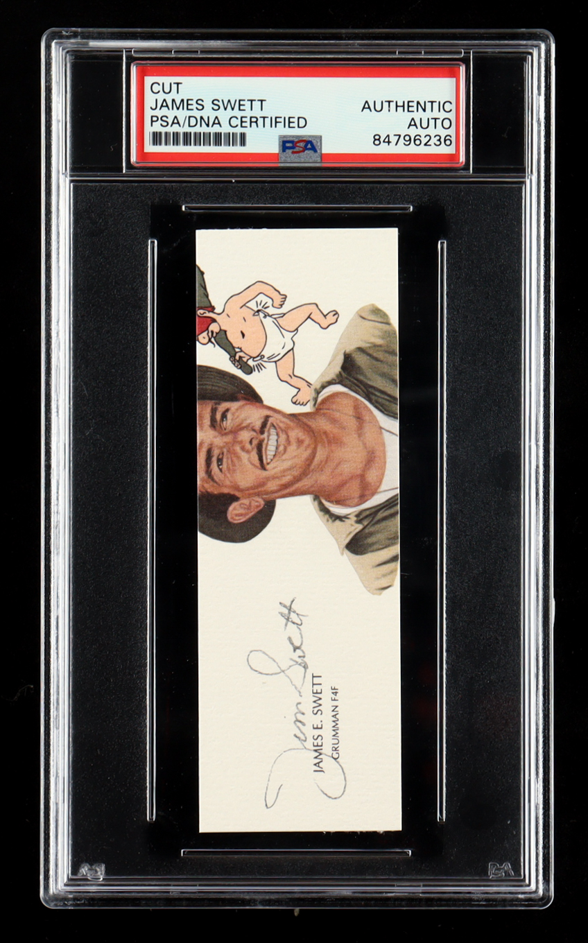 Cut measures approximately 2" x 5" in size has been hand-signed by James E. Swett (D. 2009).