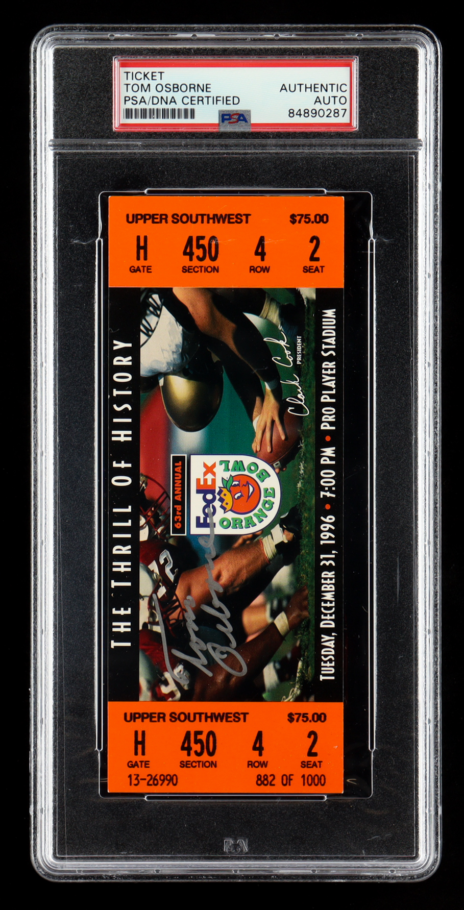Tom Osborne Signed 1996 63rd Annual FedEx Orange Bowl Game Ticket (PSA)