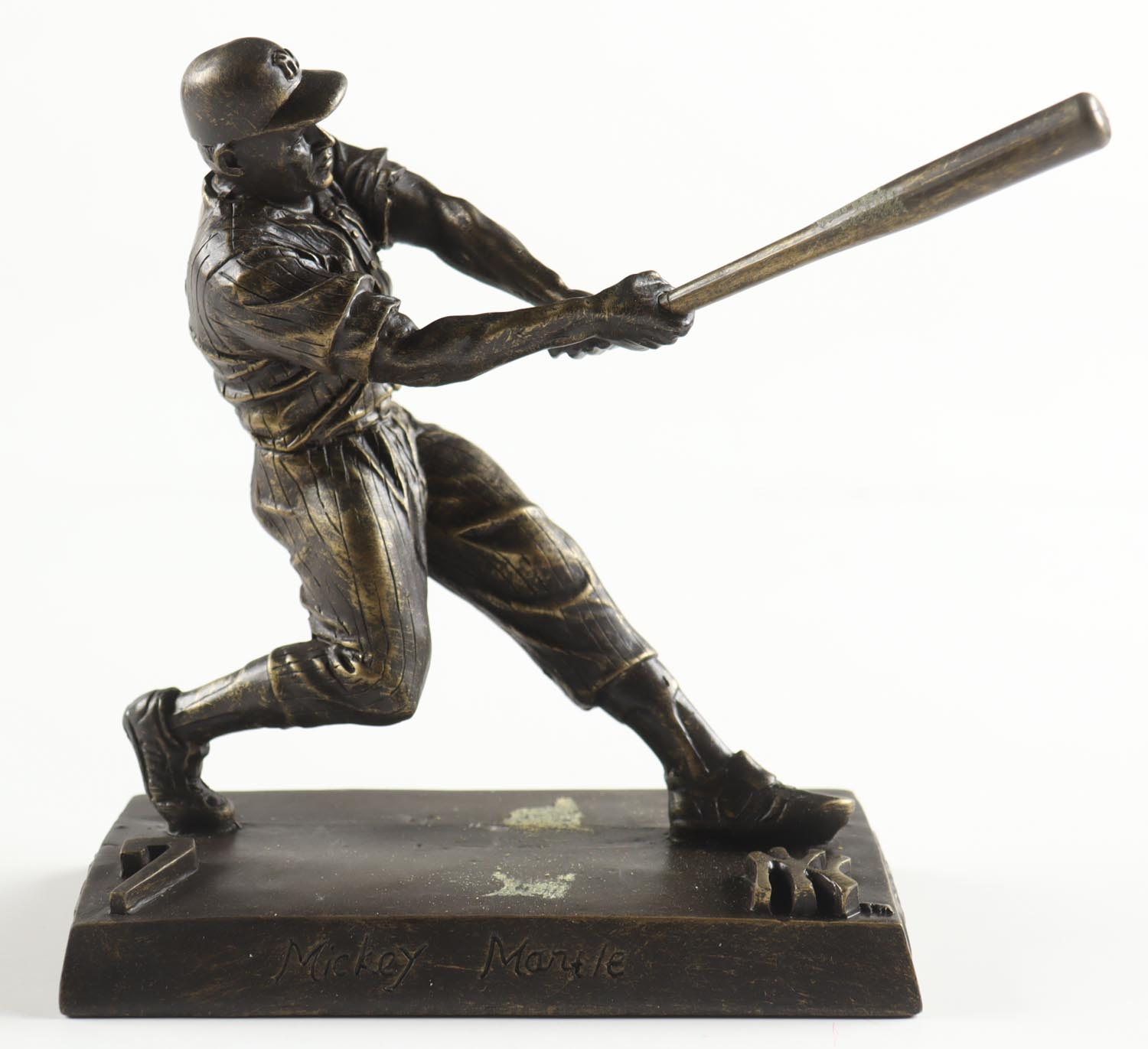 Replica bronzed figurine measures approximately 6" tall of Mickey Mantle (D. 1995, New York Yankees, HOF). Please note that the item is unsigned and does come in the original packaging.