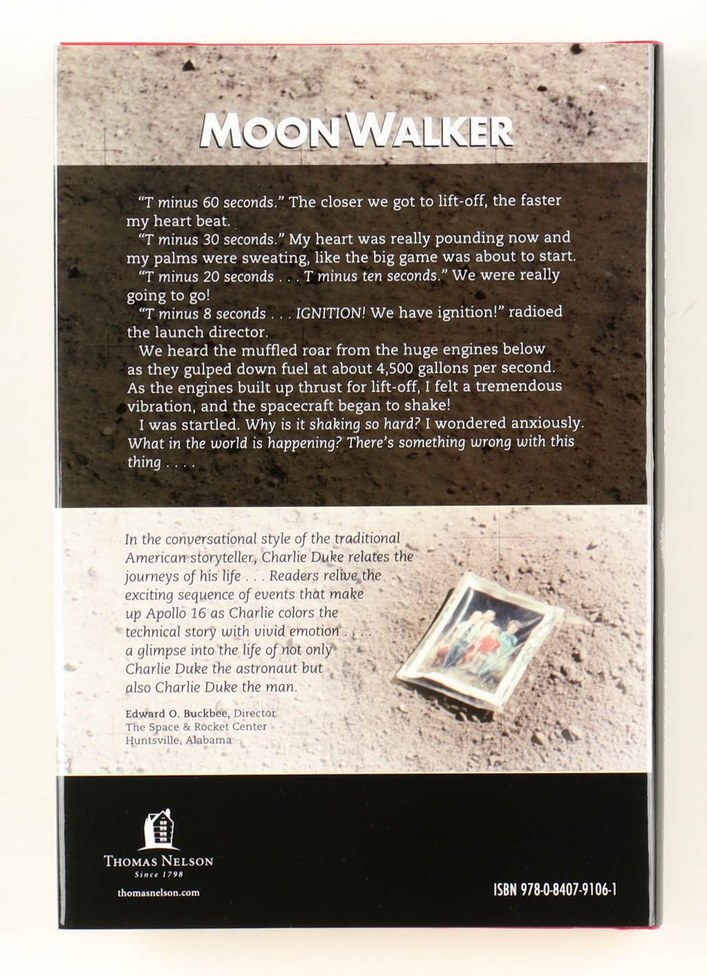 "MoonWalker" hardcover book has been hand-signed on the inside cover page by Charles Duke. Please note, there is some scuffing on the cover.