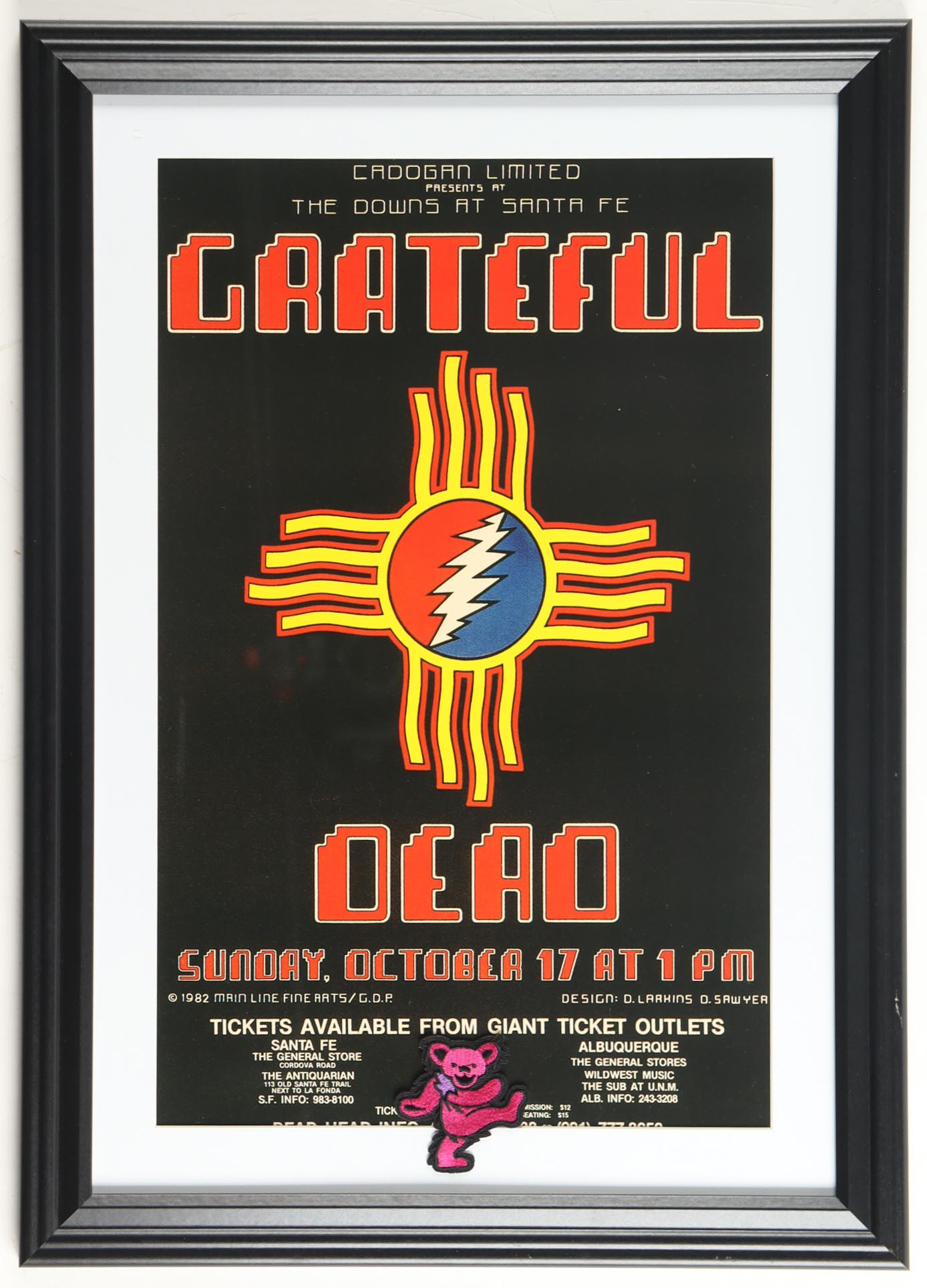 1982 "Grateful Dead" Santa Fe Concert Custom Framed Poster with Grateful Dead Patch