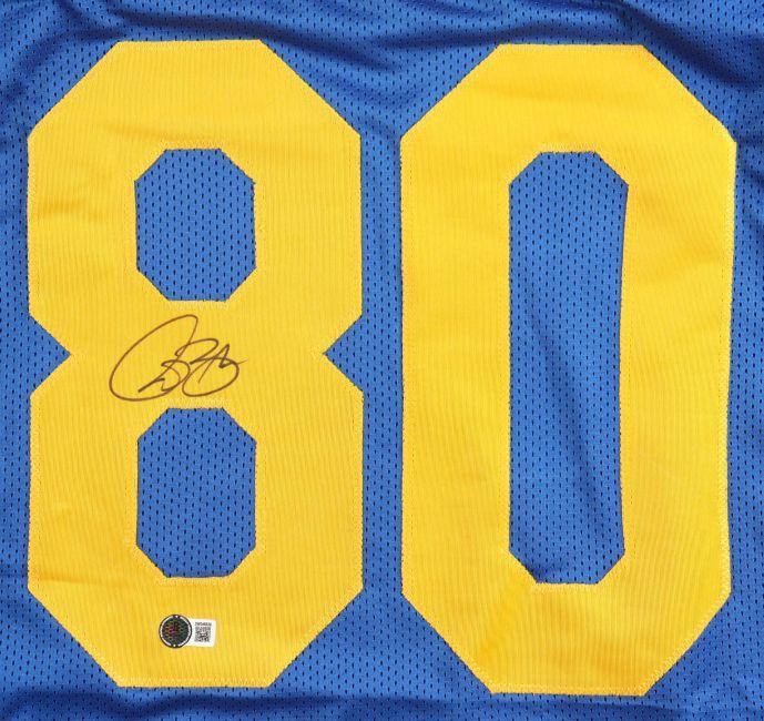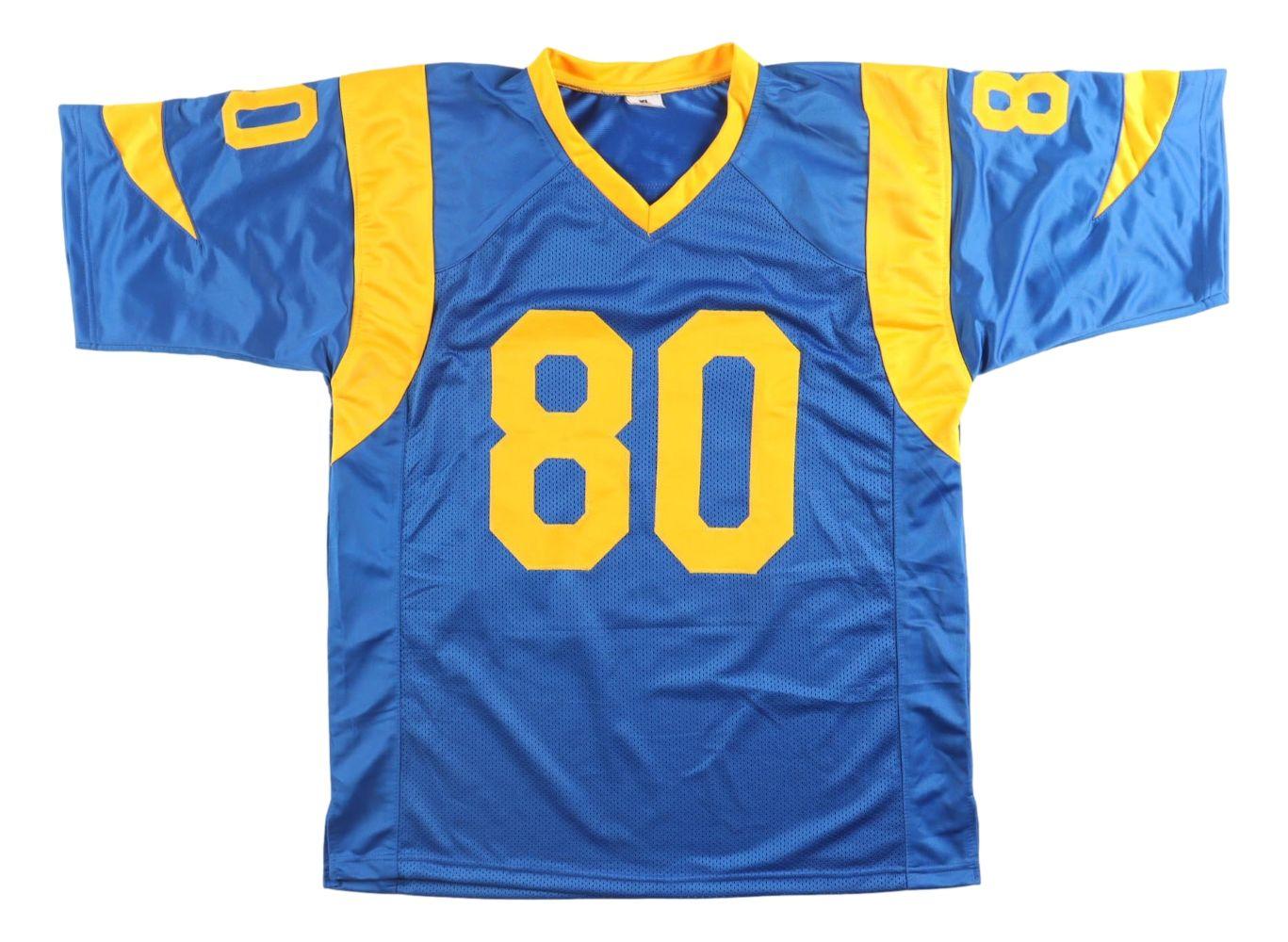 Custom jersey with everything sewn on, size XL. Hand-signed by Isaac Bruce (HOF).