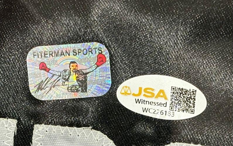 The autograph(s) includes an official James Spence Authentication (JSA) hologram and matching COA as well as an official Mike Tyson hologram from Fiterman Sports Group for authenticity purposes. The signing of this item was witnessed by JSA.
