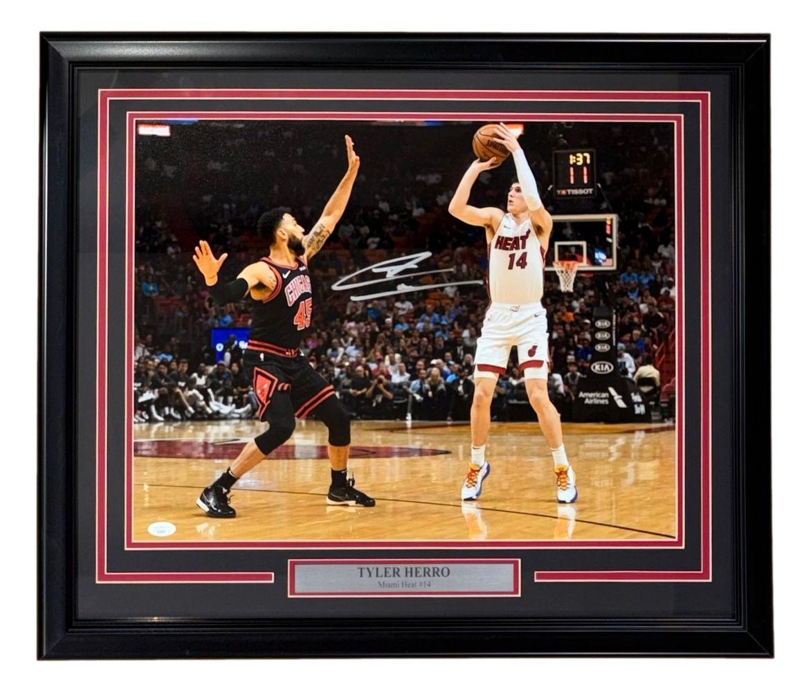 Custom frame measures 22” x 27” in size and features a photo that has been hand-signed by Tyler Herro (Miami Heat).