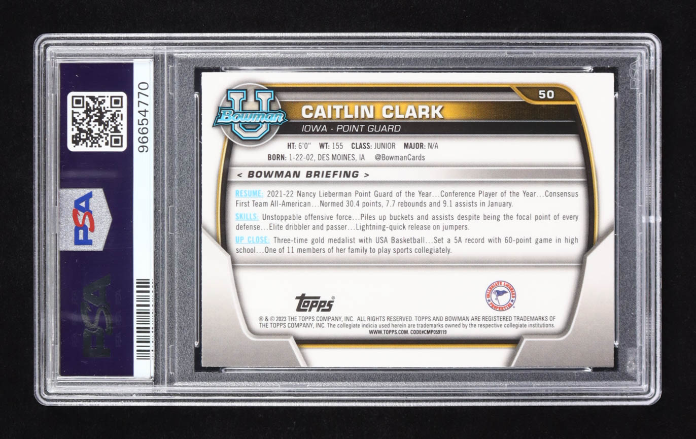 Caitlin Clark 2022-23 Bowman University #50 RC (PSA 10)