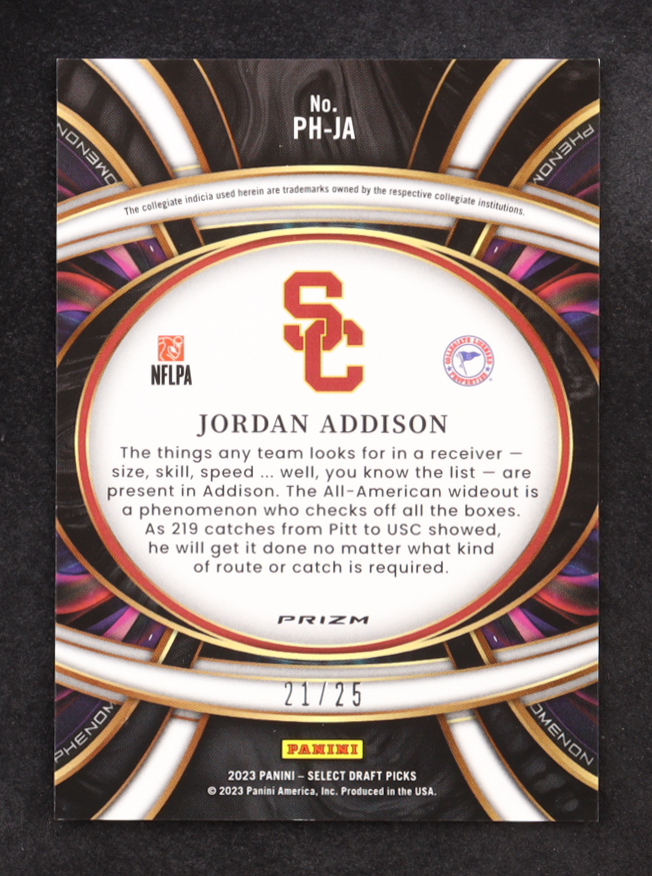 Jordan Addison 2023 Select Draft Picks Phenomenon Prizms Tie Dye #7 RC #21/25