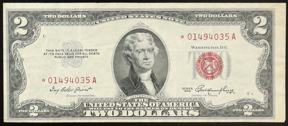 1953 United States $2 Two Dollar Legal Tender Note - Red Seal