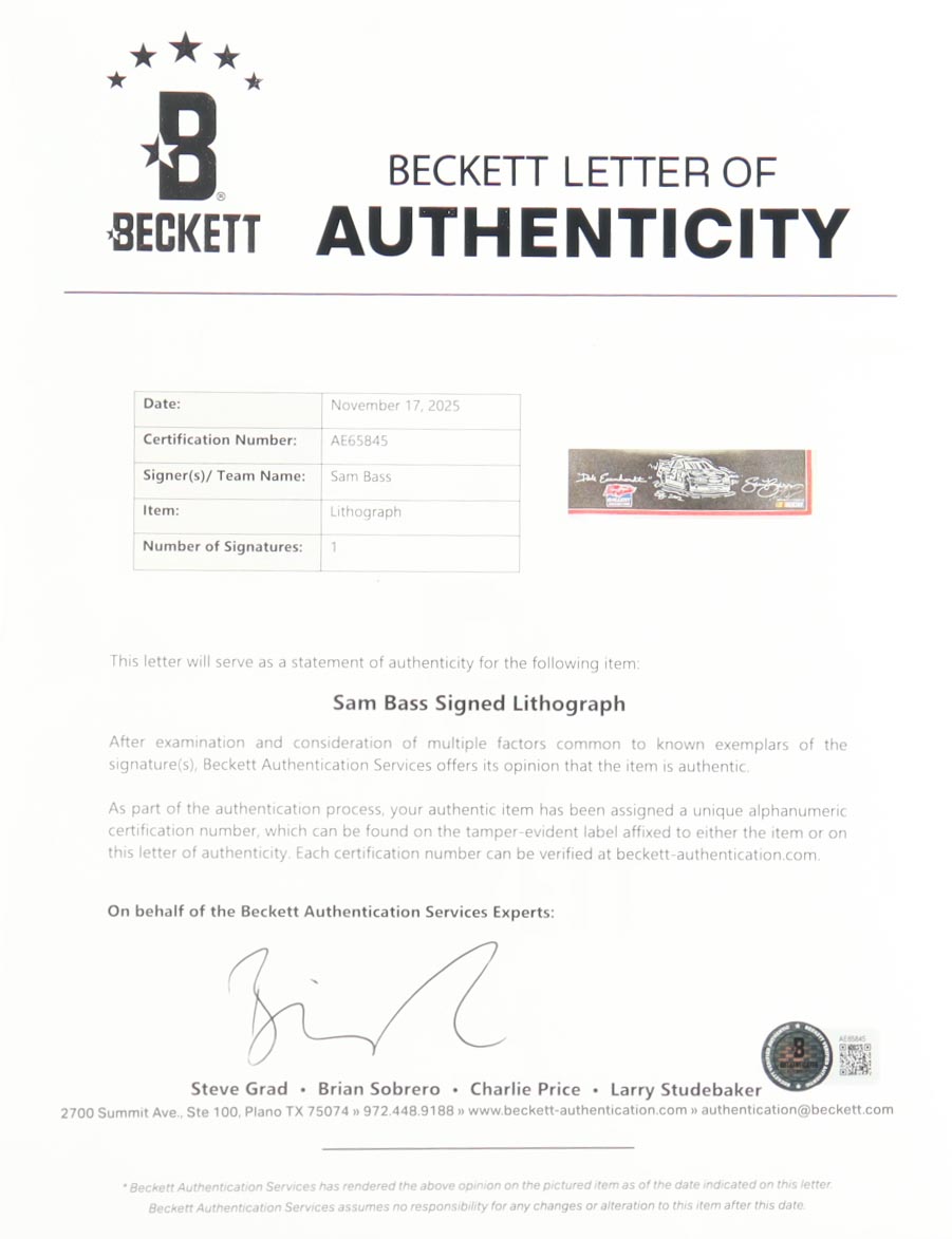 Sam Bass Signed NASCAR LE "Dale Earnhardt" Custom Framed Art Print Display (Beckett)