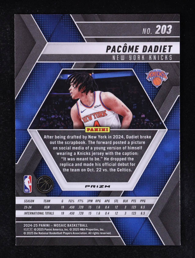 Pacome Dadiet 2024-25 Panini Mosaic White Sparkle #203 RC