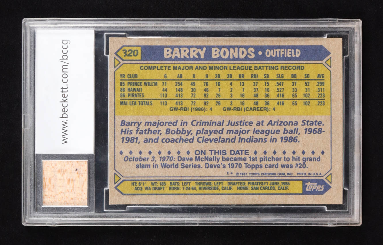 Barry Bonds 1987 Topps 2001 73 HR Season Game-Used Bat #320 RC (BCCG 10)