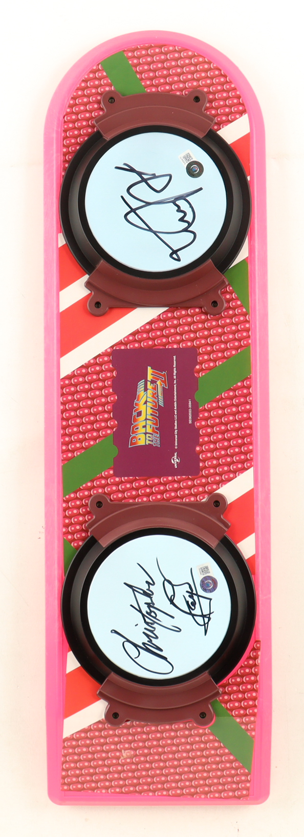 Full-size movie prop replica hoverboard. Hand-signed by Michael J. Fox (Marty McFly) and Christopher Lloyd (Dr. Emmett "Doc" Brown).