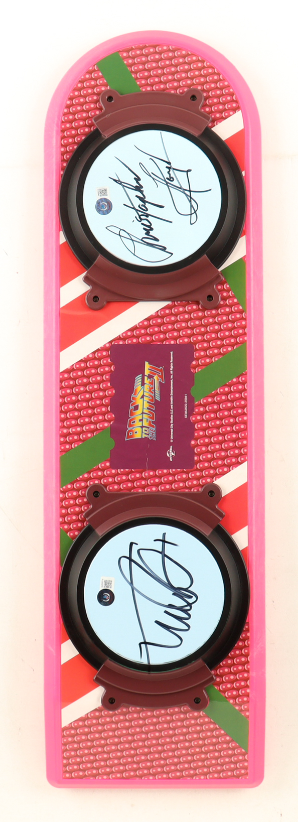 Full-size movie prop replica hoverboard. Hand-signed by Michael J. Fox (Marty McFly) and Christopher Lloyd (Dr. Emmett "Doc" Brown).