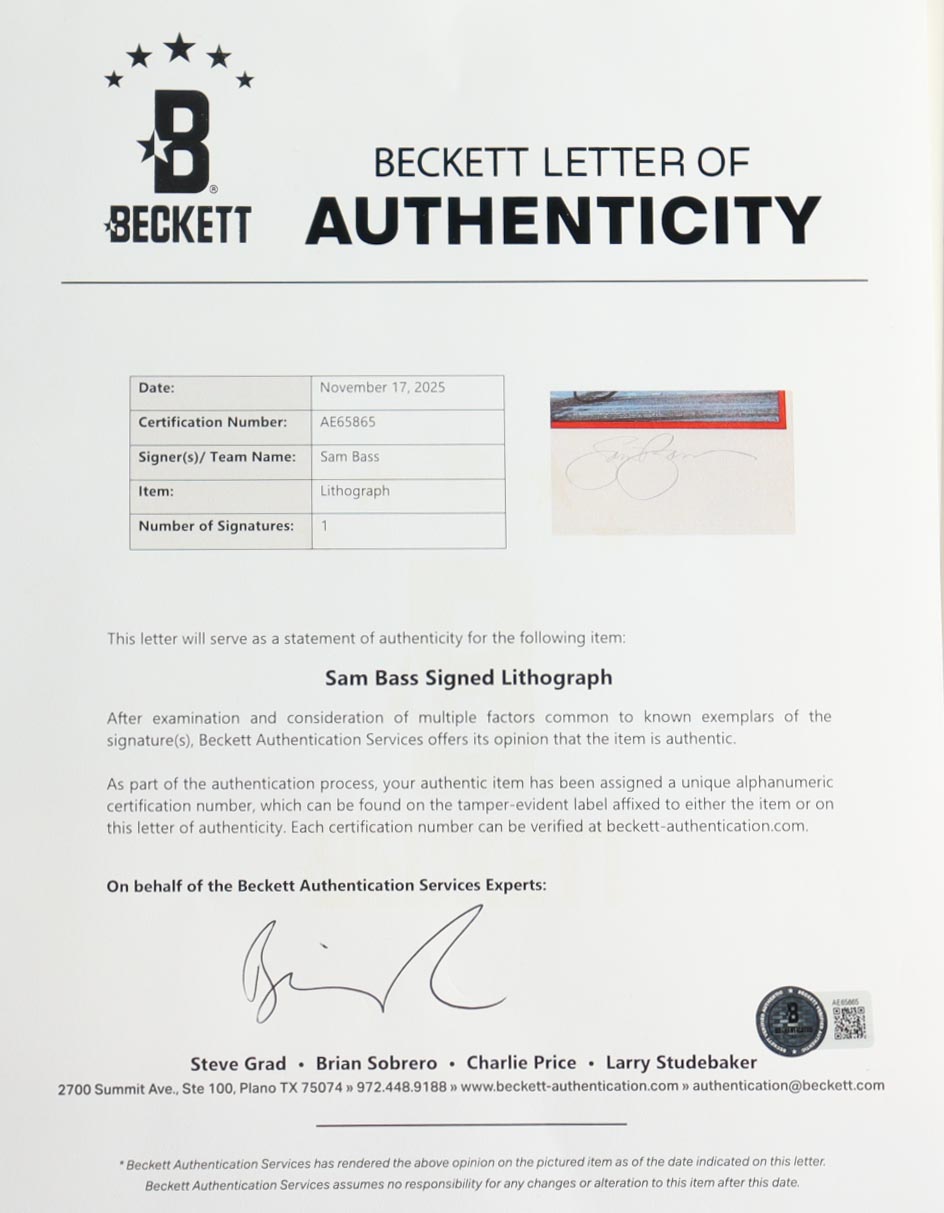 The autograph includes an official Beckett Authentication Services hologram and matching LOA for authenticity purposes.