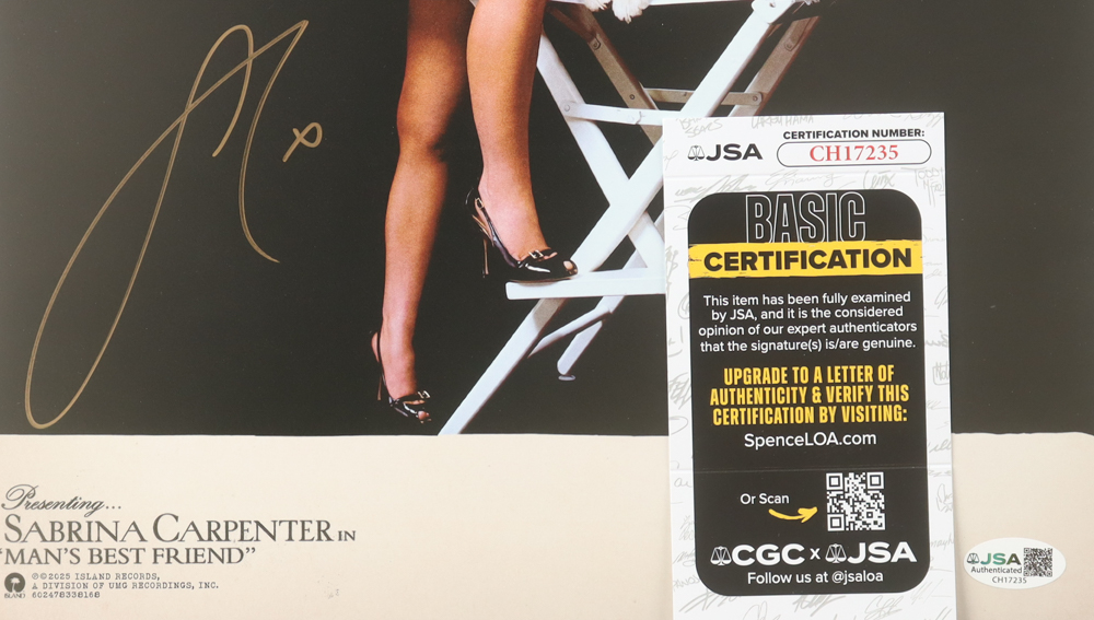 "Man's Best Friend" vinyl record album insert has been hand-signed by Sabrina Carpenter. Vinyl record is included as shown. Please note, there is some corner wear on the record jacket.