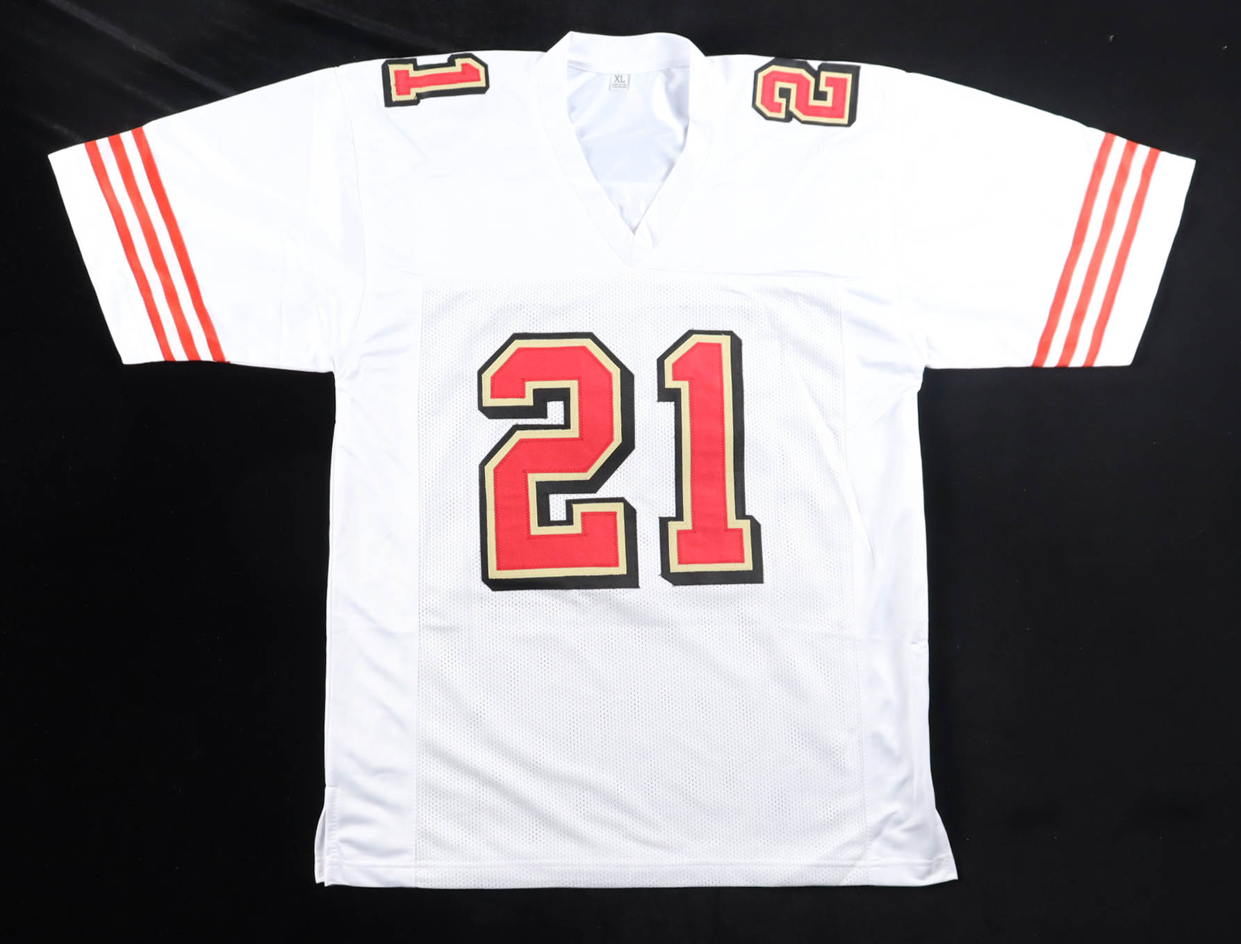 Custom jersey with everything sewn on, size XL. Hand-signed by Frank Gore (San Francisco 49ers).