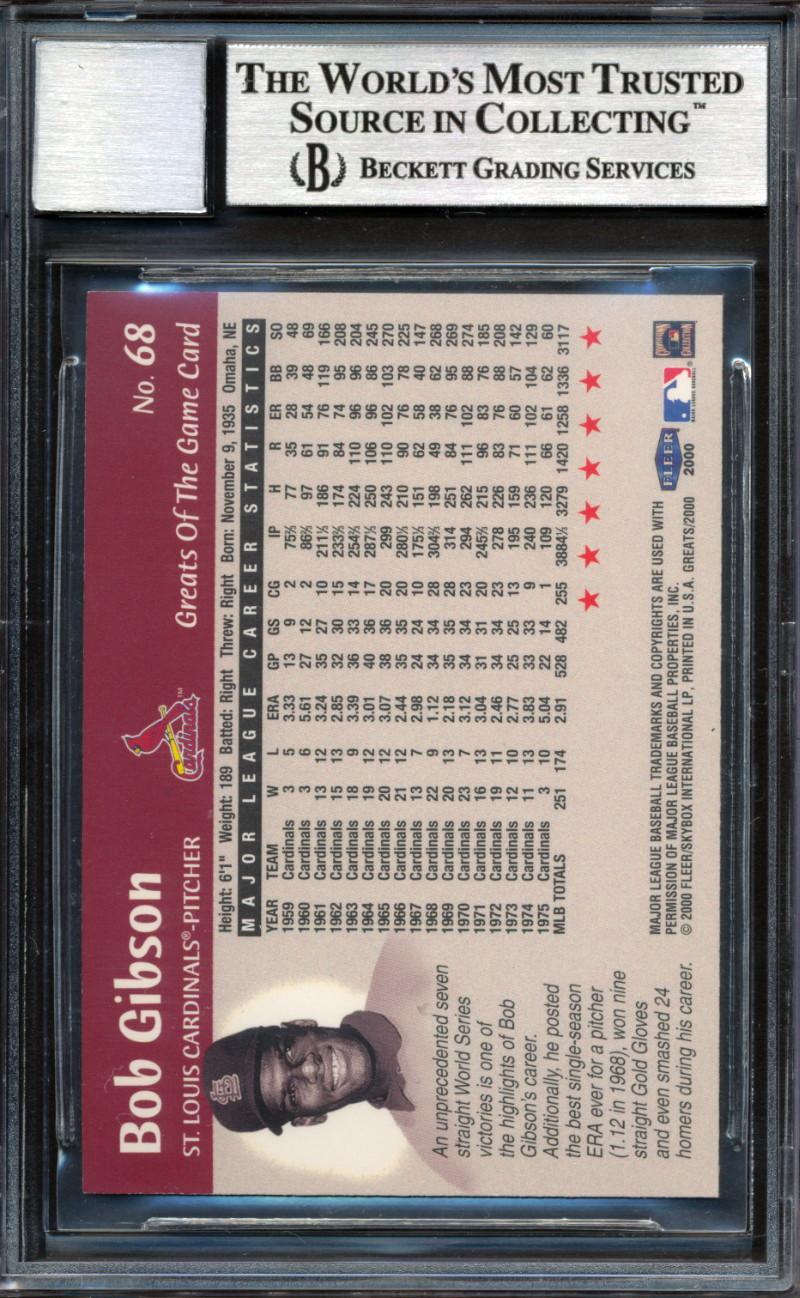 Bob Gibson Signed 2000 Fleer Greats of the Game #68 (BGS | Autograph Graded 10)