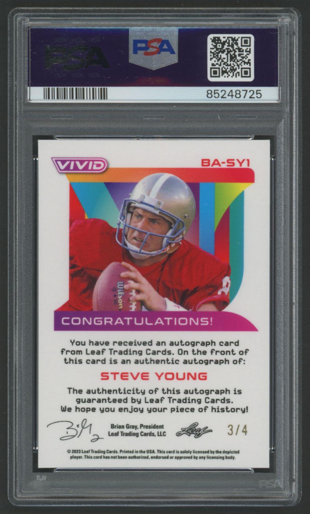 Steve Young 2023 Leaf Vivid Autograph Green #BASY1 #3/4 (PSA 10)