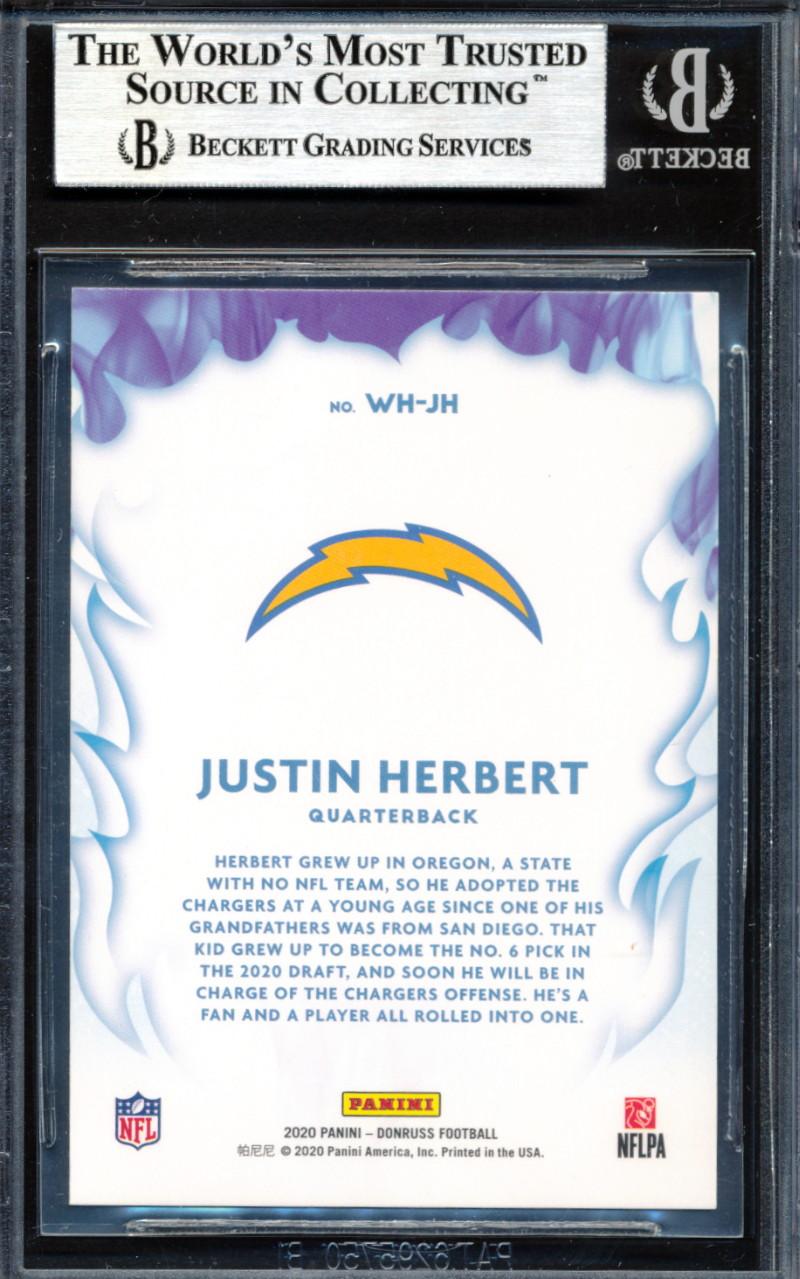 Justin Herbert Signed 2020 Donruss White Hot Rookies #WHJH (BGS)
