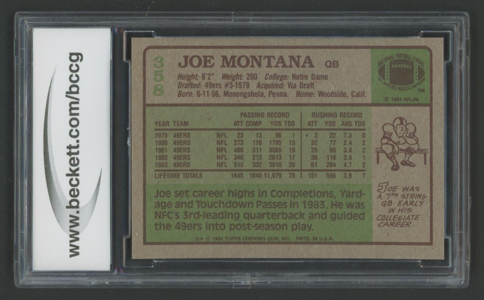 Joe Montana 1984 Topps #358 PB (BCCG 9)