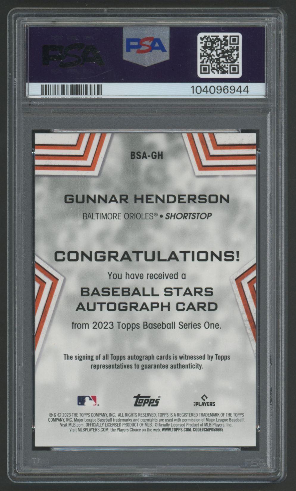 Gunnar Henderson 2023 Topps Baseball Stars Autograph #BSAGH (PSA 9)