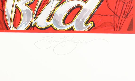 Custom frame measures approximately 32" x 37" in size. Art print is hand-signed by Sam Bass. Item is limited edition # Artist Proof.