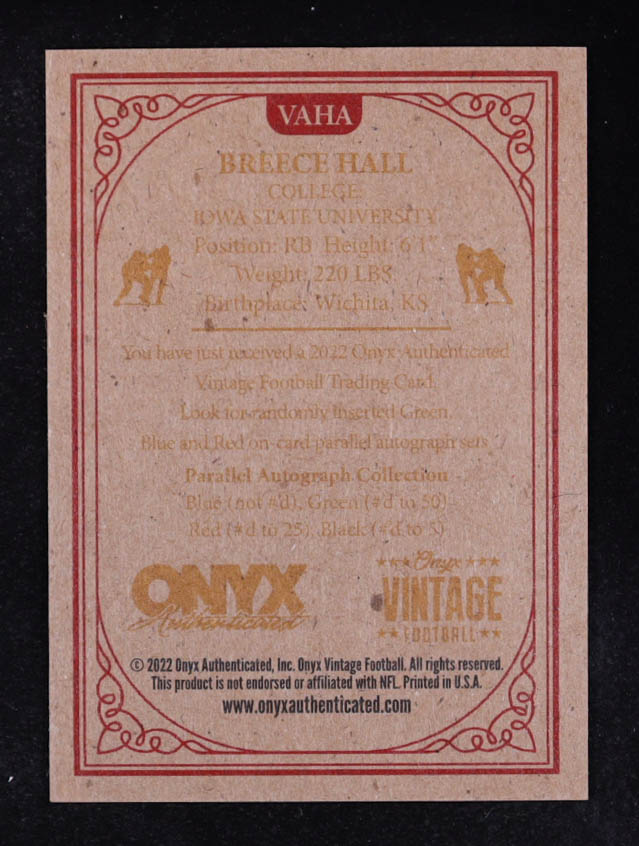 Breece Hall 2022 Onyx Vintage Autographs #AVBHA RC