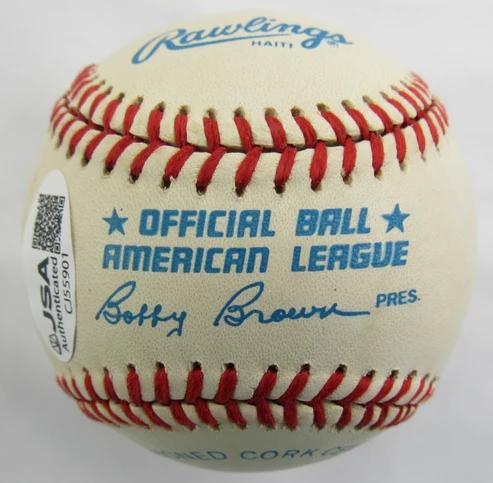 Rawlings Official American League baseball has been hand-signed by Yogi Berra (New York Yankees, HOF, D. 2015).