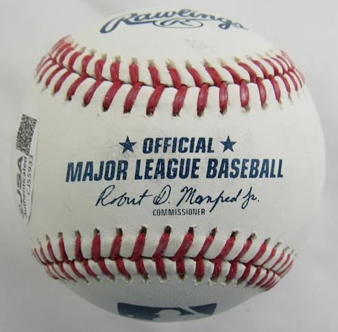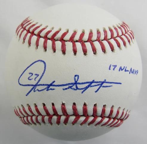 Giancarlo Stanton Signed OML Baseball Inscribed "17 NL MVP" (JSA)