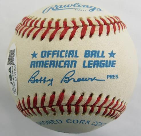 Rawlings Official American League Baseball. Hand-signed and inscribed by Don Larsen (D. 2020, New York Yankees). Please note, the baseball is naturally toning and stained.