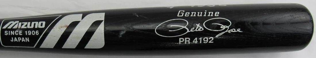 Mizuno Genuine Player Model baseball bat has been hand-signed and inscribed by Pete Rose (Cincinnati Reds, D. 2024).
