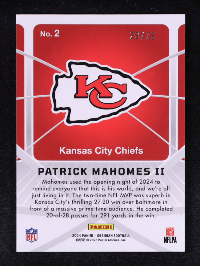 Patrick Mahomes II 2024 Panini Obsidian Atomic Initials Red #2 #29/75