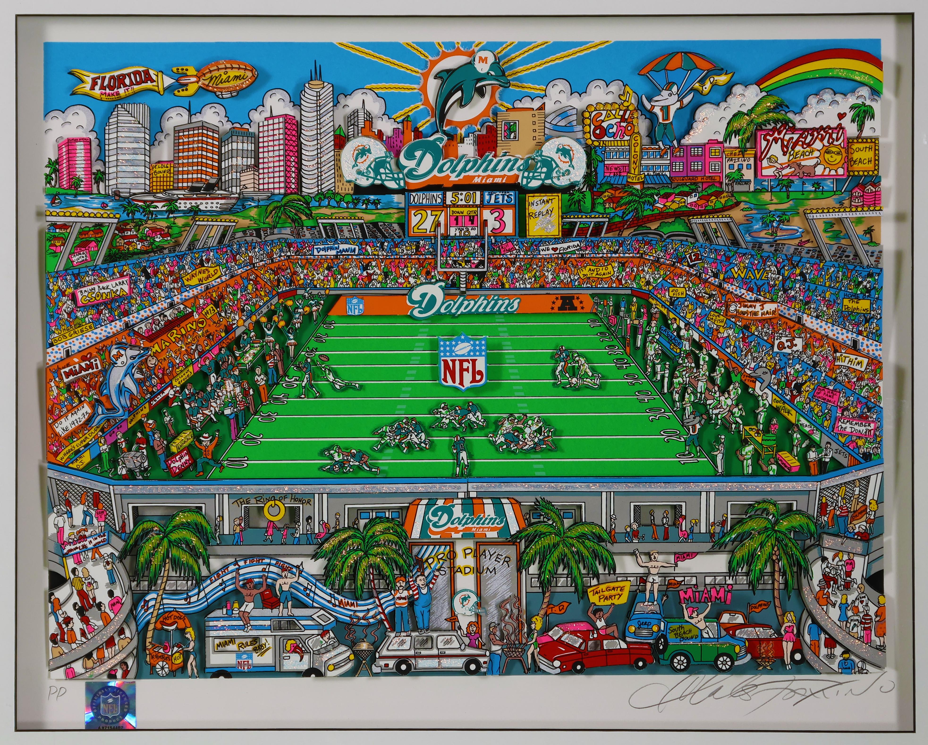 Charles Fazzino "Miami Dolphins Pro Player Stadium" Custom Framed 3-D Pop Art Serigraph Special Printer's Proof