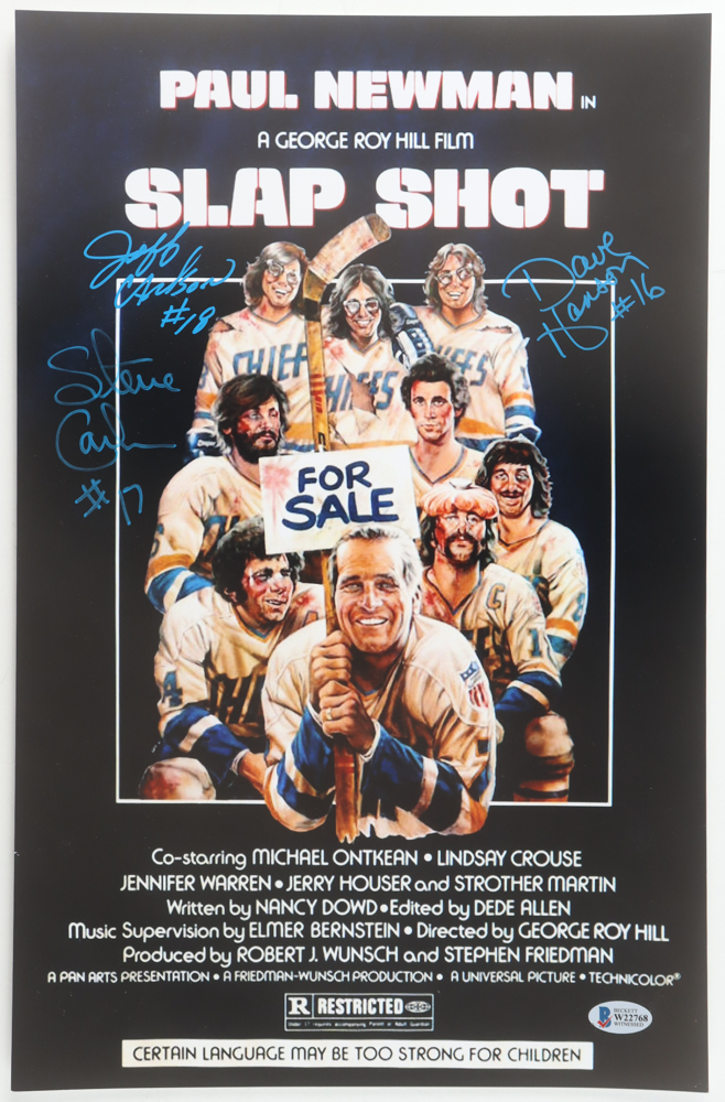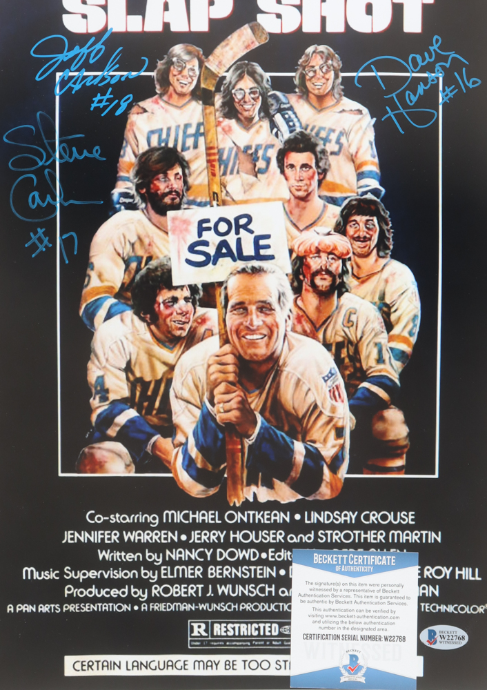 Jeff Carlson, Dave Hansen & Steve Carlson Signed "Slap Shot" 11x17 Photo (Beckett)