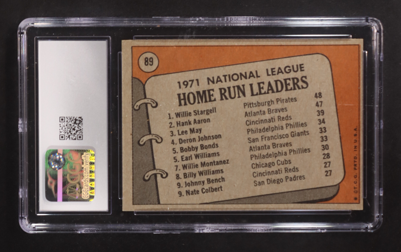 Willie Stargell / Hank Aaron / Lee May 1972 Topps #89 NL Home Run Leaders (CGC 6.5)