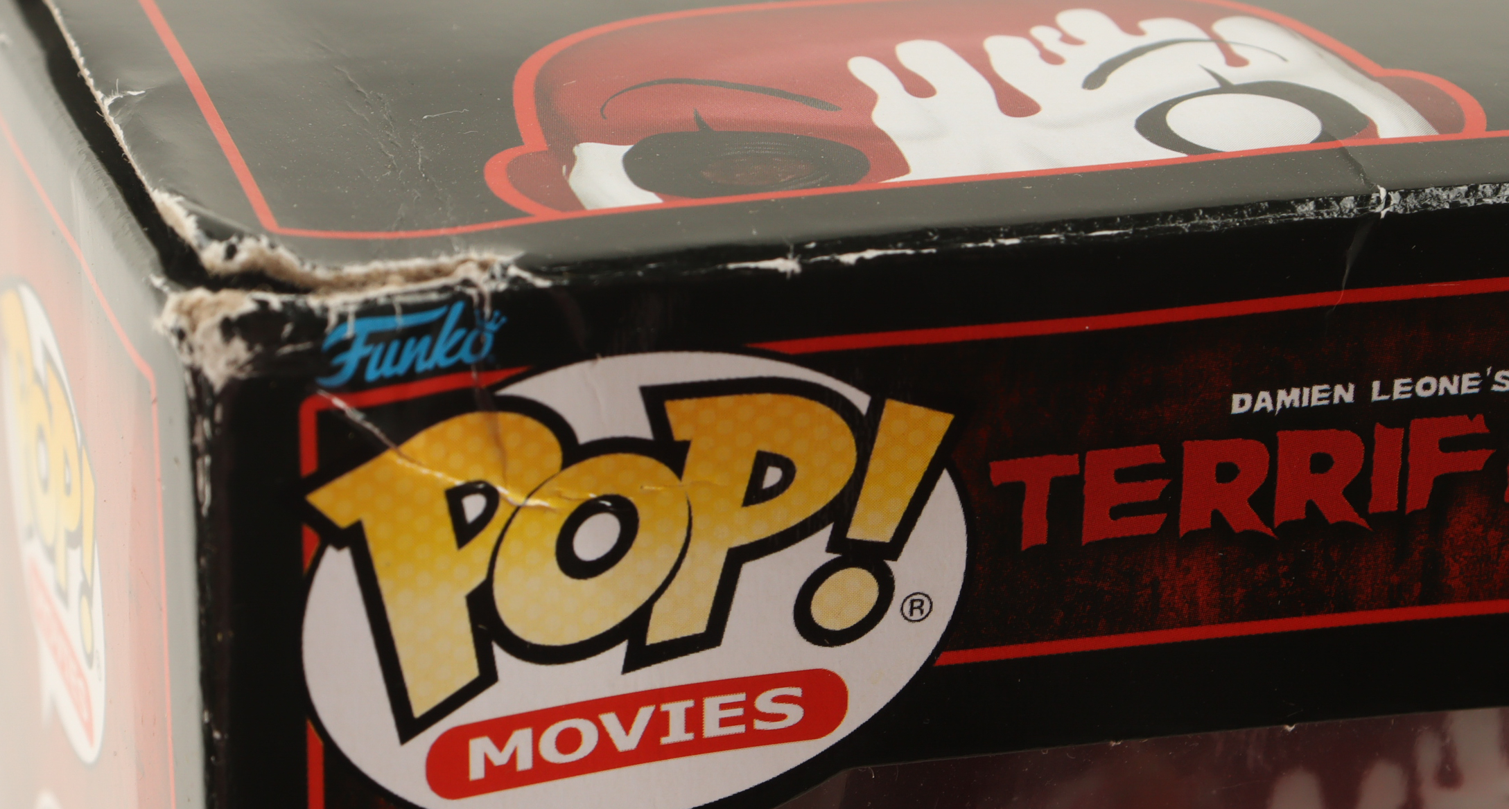 Vinyl figure measures approximately 4" tall and has been hand-signed on the packaging by David Howard Thornton (Art the Clown). Please note, there is heavy creasing, scuffing, corner wear and tears on the packaging.