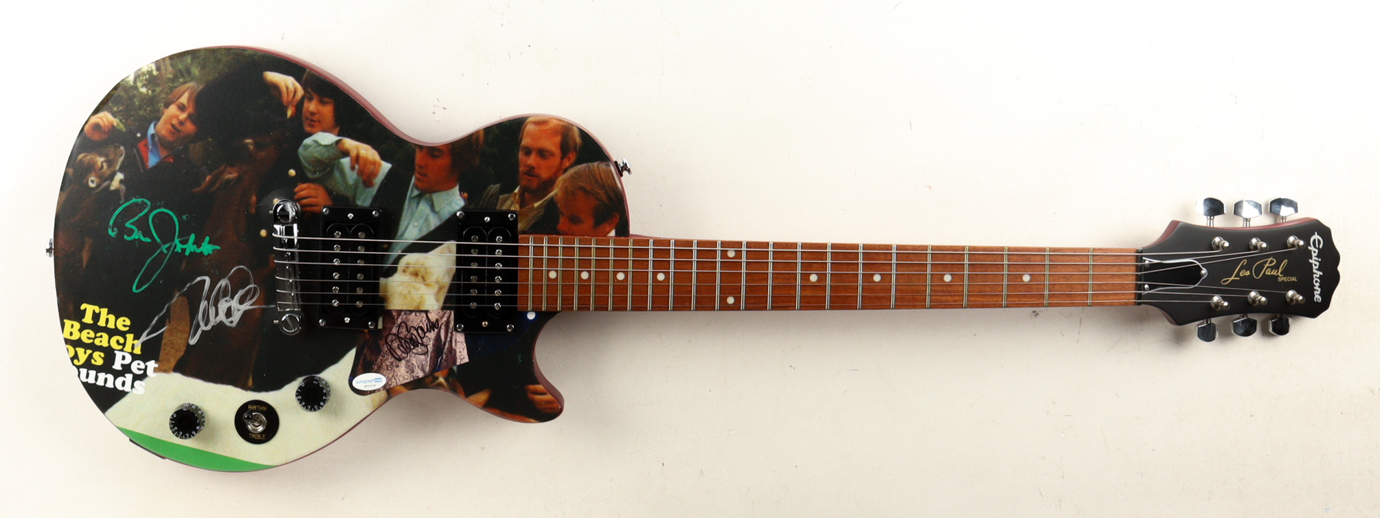 Custom Electric Guitar has been hand-signed on the pick-guard by Bruce Johnston, Mike Love and Dave Marks.