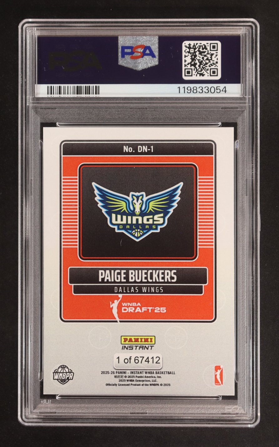 Paige Bueckers Signed 2025 Panini Instant WNBA Draft Night #DN1 RC (PSA)