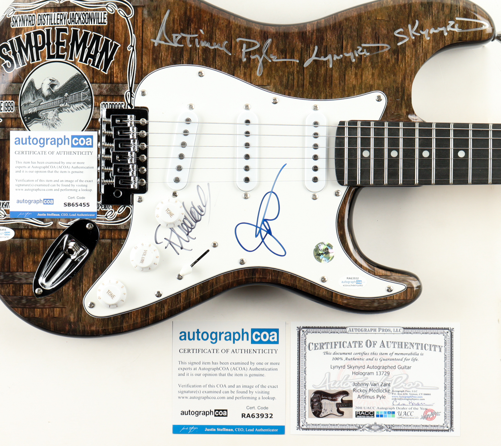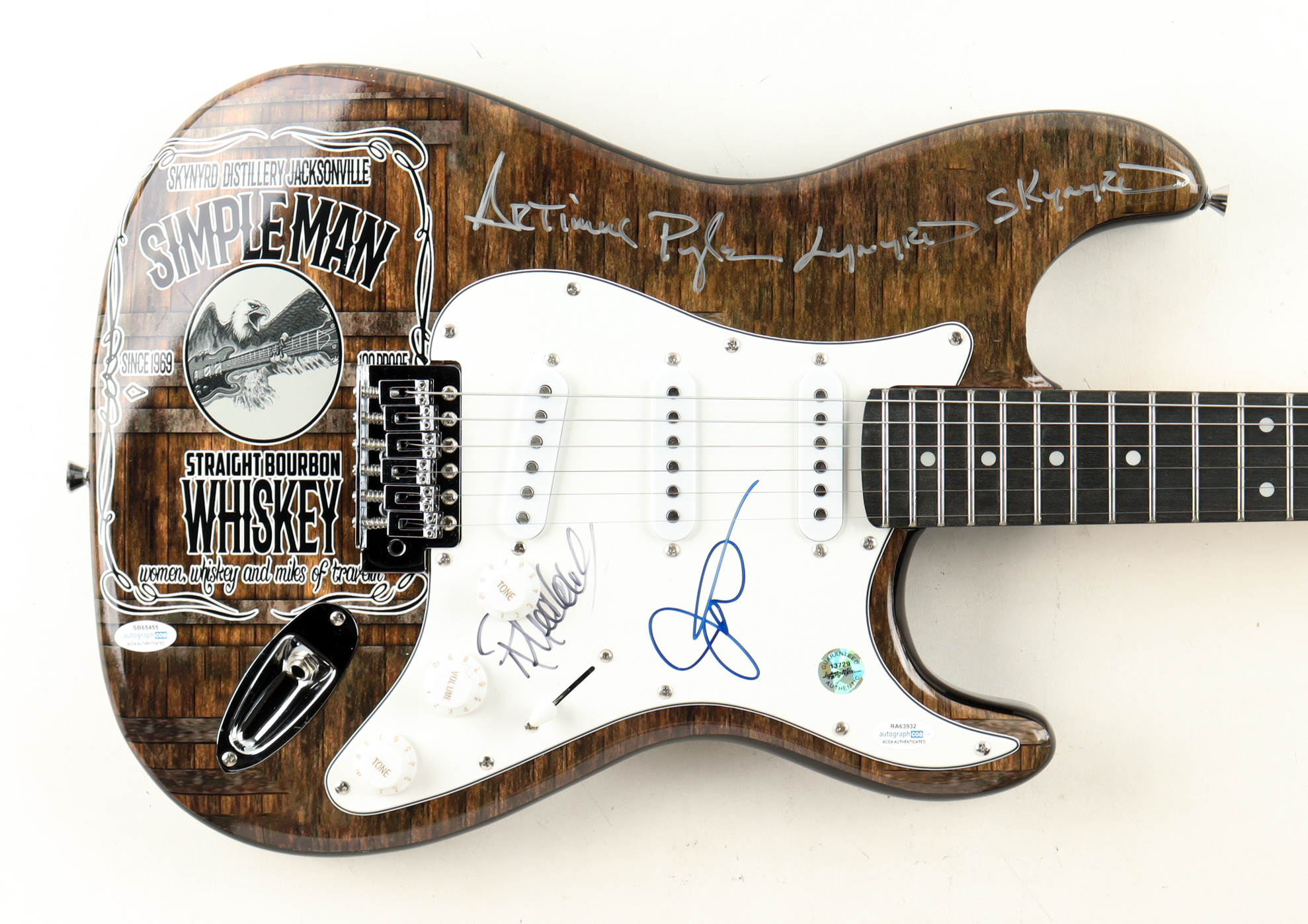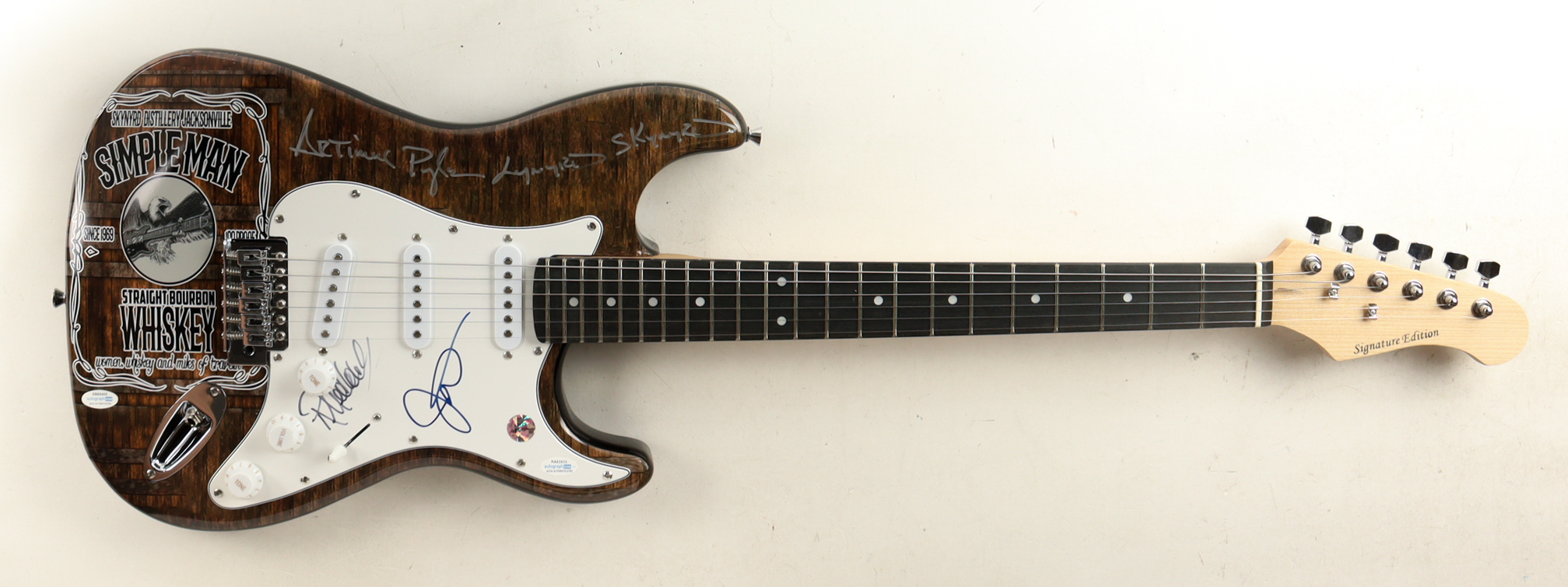Custom Electric Guitar has been hand-signed and inscribed on the pick-guard by Johnny Van Zant, Rickey Medlocke and Artimus Pyle.
