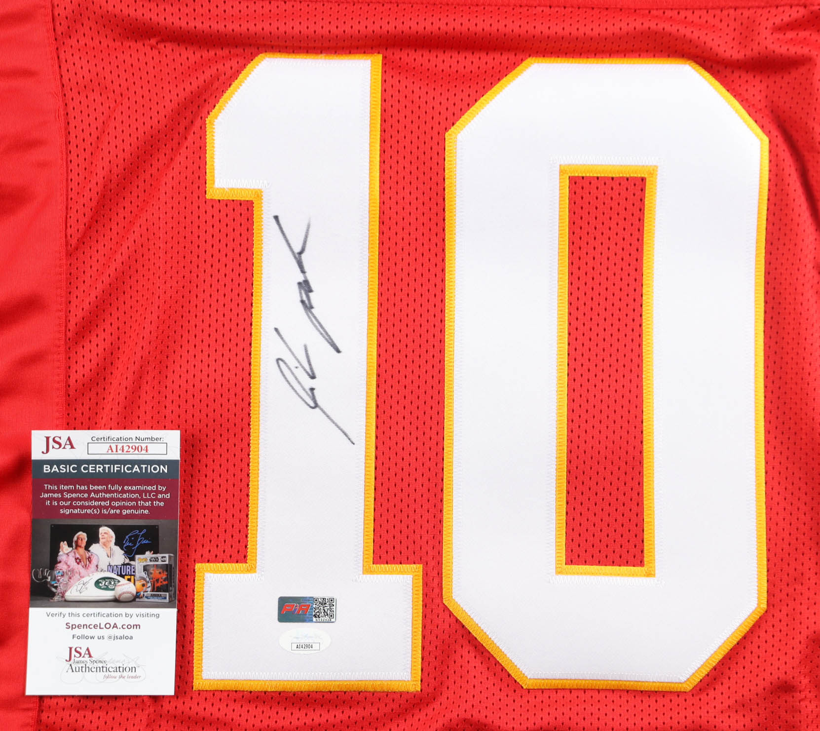 Custom jersey with everything sewn on, size XL. Hand-signed by Isiah Pacheco.